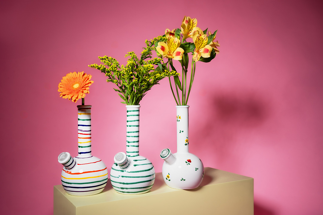 Die Gmundner Keramik Bong entstammt einem Satire-Artikel und einem Kunstprojekt aus dem Jahre 2023 im Rahmen der „Academy of Ceramics Gmunden“. Aufgrund der großen Nachfrage und der medialen Berichterstattung haben wir die Bong mit unseren Keramikern weiterentwickelt. Jedes Stück wird von Hand gefertigt, ist ein echtes Unikat und derzeit in den drei Designs „Grüngeflammt„, „Regenbogen“ und „Streublumen“ erhältlich.