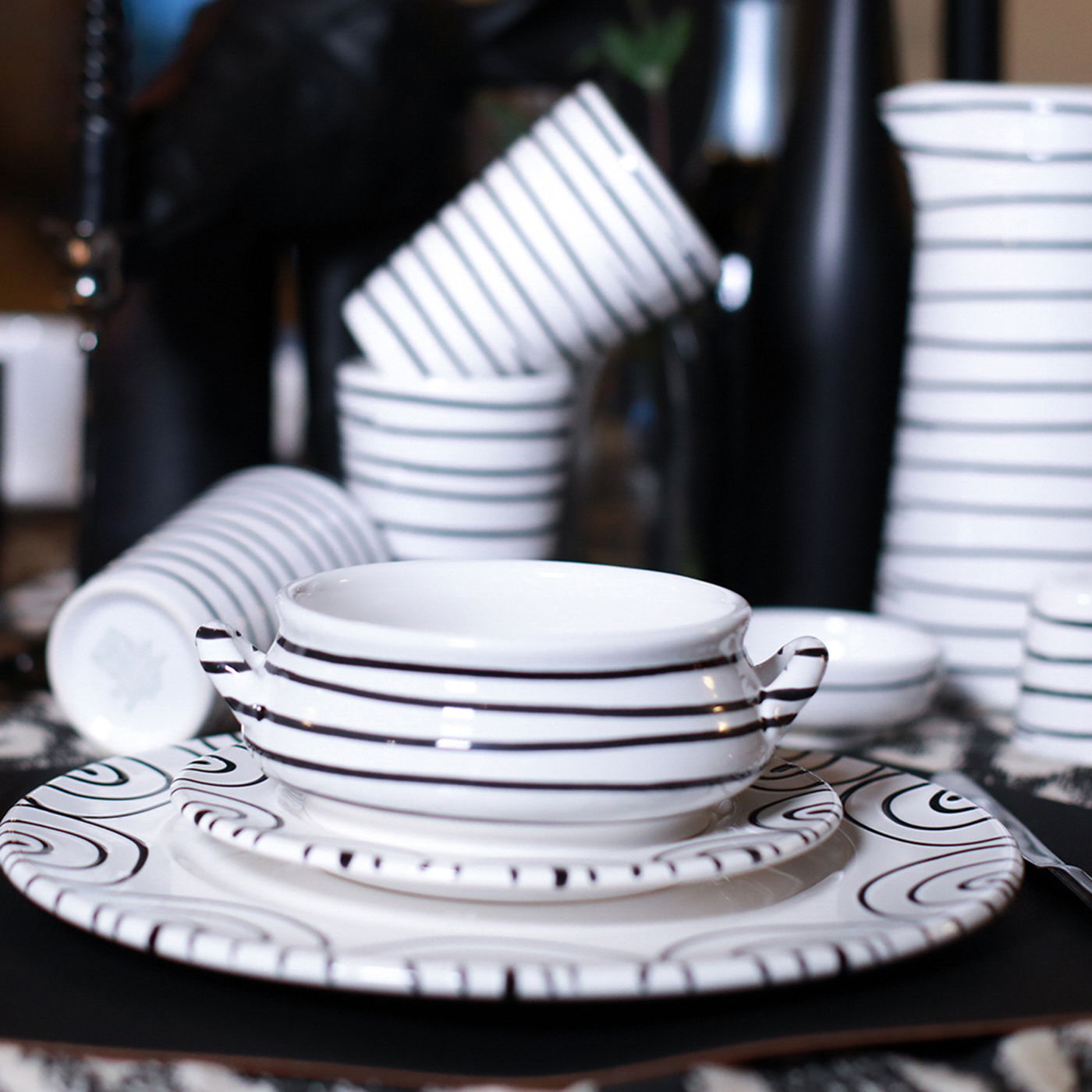Zeitlos und stilvoll präsentiert sich das Design „Schwarzgeflammt“, eine Ikone trifft auf die Moderne. Das unverkennbare Flammen-Design kommt durch den Kontrast der schwarzen Farbe auf strahlend weißer Glasur besonders zur Geltung. Diese Kombination erinnert an Designs aus der Epoche der Wiener Keramik und ist das moderne Pendant zu unserem Klassiker in Grün. Jedes Stück wird von Hand gefertigt und ist ein echtes Unikat. Gmundner Keramik eignet sich zudem für die Spülmaschine und Mikrowelle.